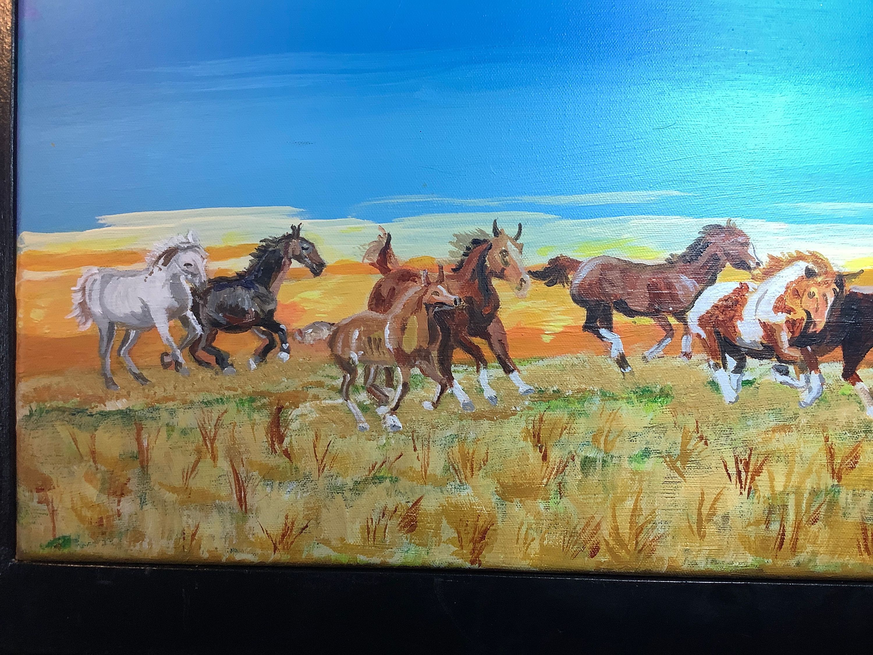 Art Image Artwork mediaAcrylicArtwork DescriptionSummers on the farm reawaken my love of horsesArtwork size 12 x24Artwork price Artist Last NameCook