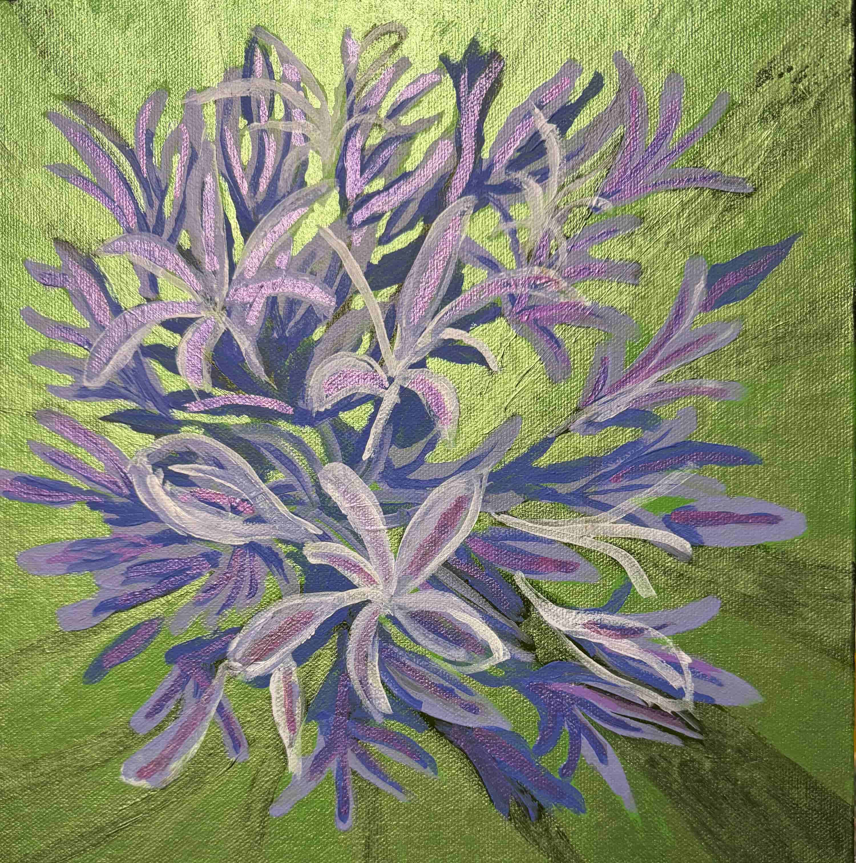 Art ImageArtwork media AcrylicArtwork DescriptionAfrican Lilies also known as Agapanthus painted with acrylic and gem colours StefHutchArt IG Stephanie Hutchinson Art FB stephanie.slyfe@gmail.comArtwork price 200Artist Last NameHutchinson