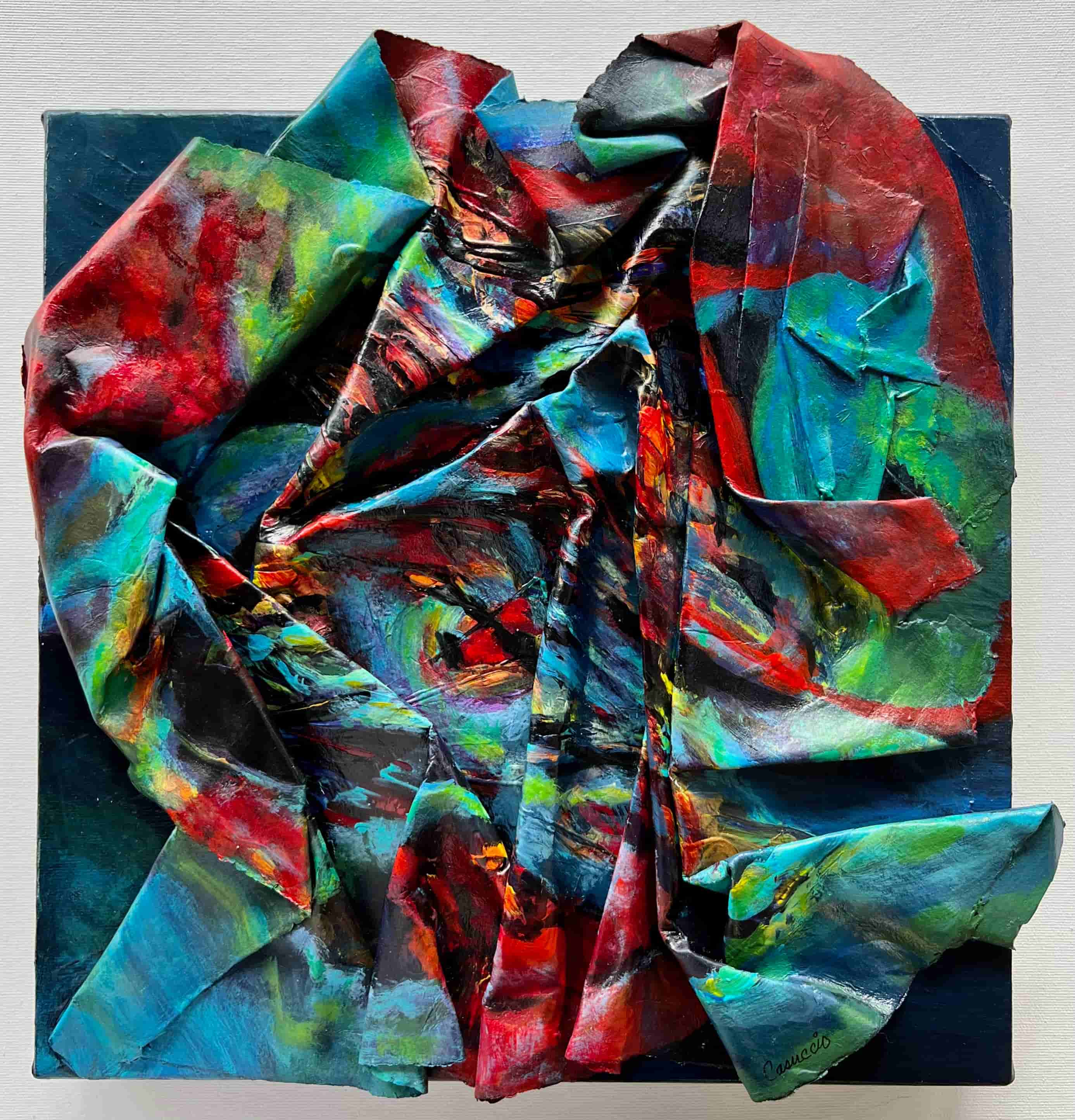 Emergence Emergence is a sculptural painting that is part of a series called Dimensional Realms that explores the interplay between the physical depth created by molded watercolor paper and the abstract dimension of space within each piece. It is best seen in person but can be viewed at different angles at www.carmelacasuccio.com @carmelacasuccio_art Email: carmela@carmelacasuccio.com