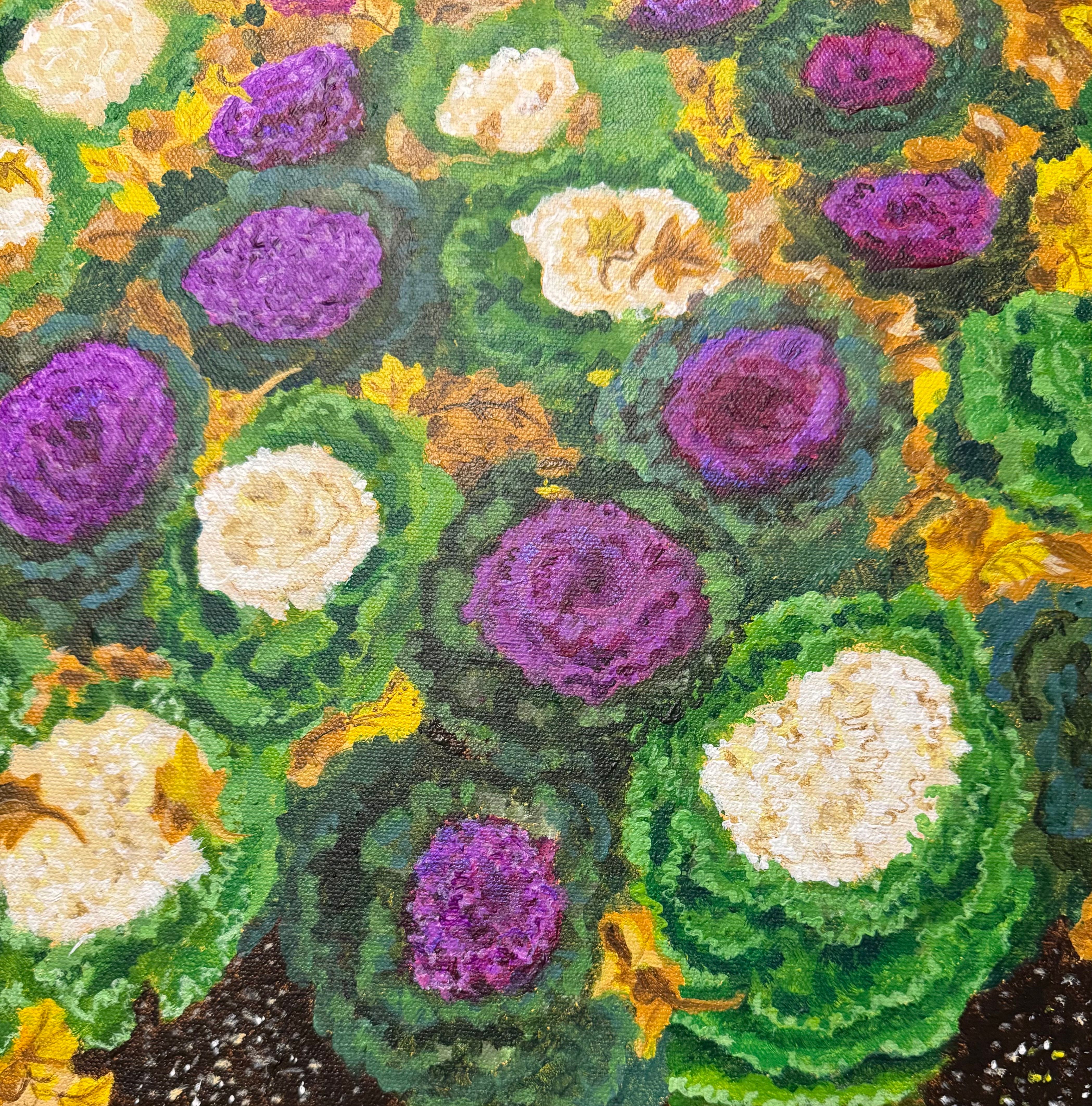 Fall Ornamental Cabbage with fallen leaves painted from a photo taken at Cedaridge in Scarborough StefHutchArt IG Stephanie Hutchinson Art FB stephanie.slyfe@gmail.com