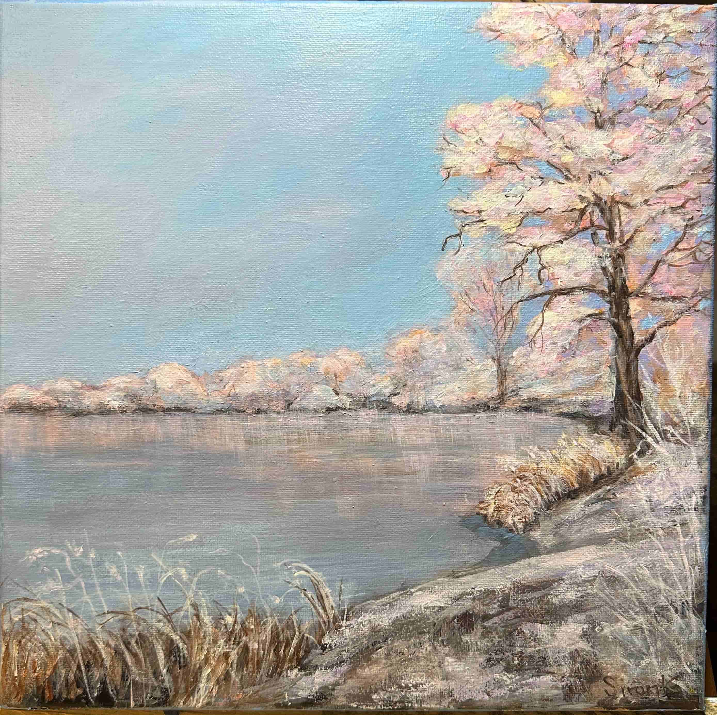 I was moved by the contrast between the sun’s soft light and the glacial transparency of the frost-covered bank. Before me lay the icy chill of winter morning, wafting through the still unburdened leaves. Contact: https://www.facebook.com/sirunig_art; IG@sirunig_art sirun0708@yahoo.com
