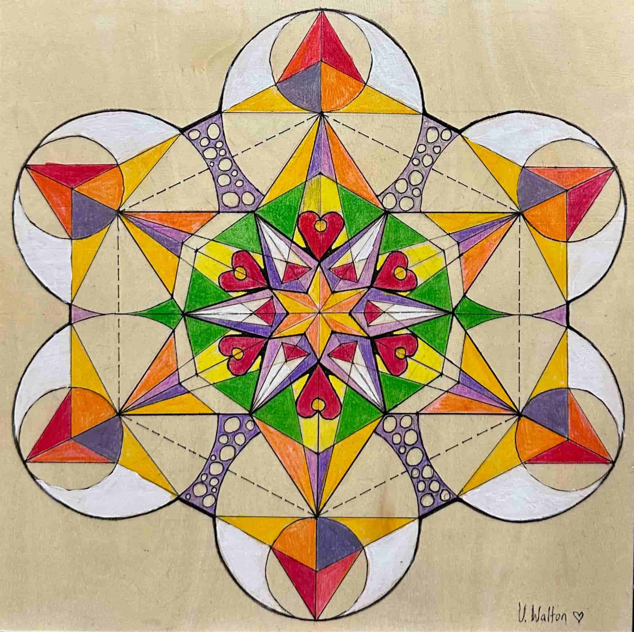 Built from interlocking circles, triangles and star forms, the composition radiates outward from the star at its centre. Intricate linework guides one through the mandala like structure, suggesting themes of unity, expansion and inner aligment. www.verawalton.com verawalton@gmail.com