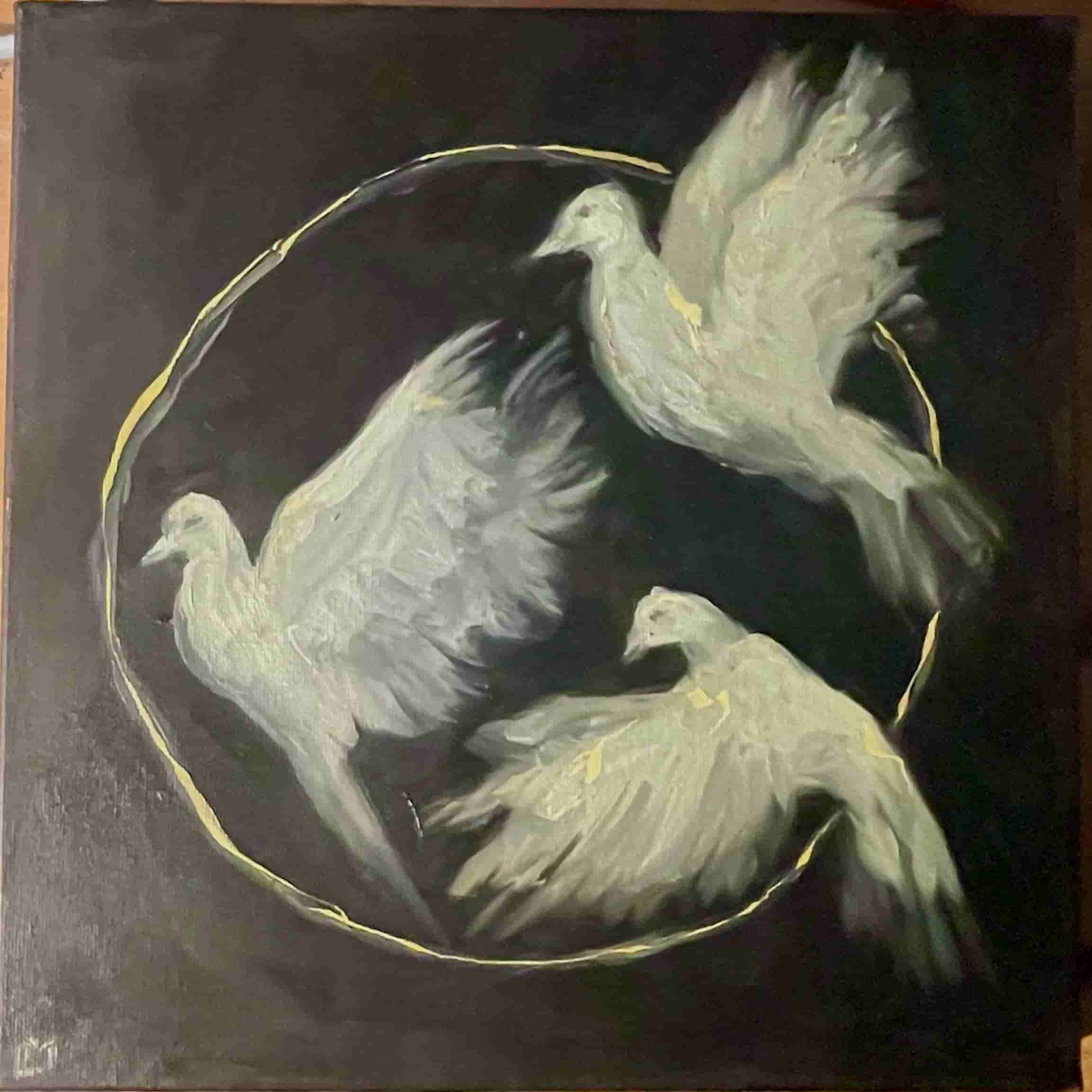 Incorporating imagery of white doves, which often represent peace, love, purity, and freedom; the biblical symbolism of the number three, as seen through the Father, the Son, and the Holy Spirit; and the glowing golden circle emphasizing the interconnectedness of all these distinct factors, 'the Trinity' acts as a commentary on the importance of peace, freedom, and migration in world so full of turmoil. It calls on the viewer to uphold a promise of love in their daily lives, regardless of their own diverse backgrounds. Instagram: @artbylmnop Email: lucas.munteanu@icloud.com