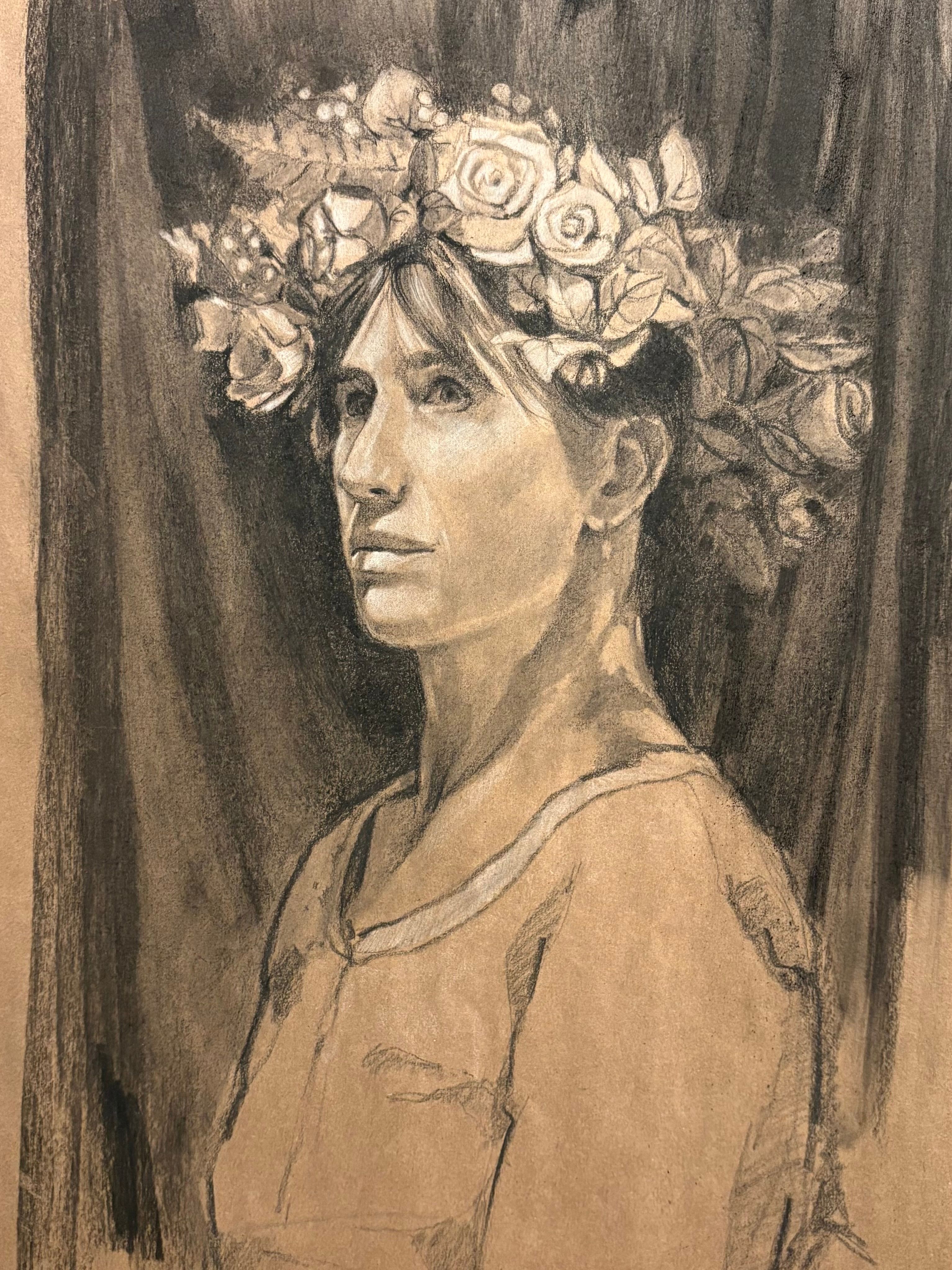 Art Image Artwork mediaCharcoalArtwork DescriptionThis piece began with a life drawing demonstration from my portrait class, and was completed in the studio of our beautiful Krysta. @ThePaintingGreek Artwork size 18"x24"Artwork price 250Artist Last NameKalianteris