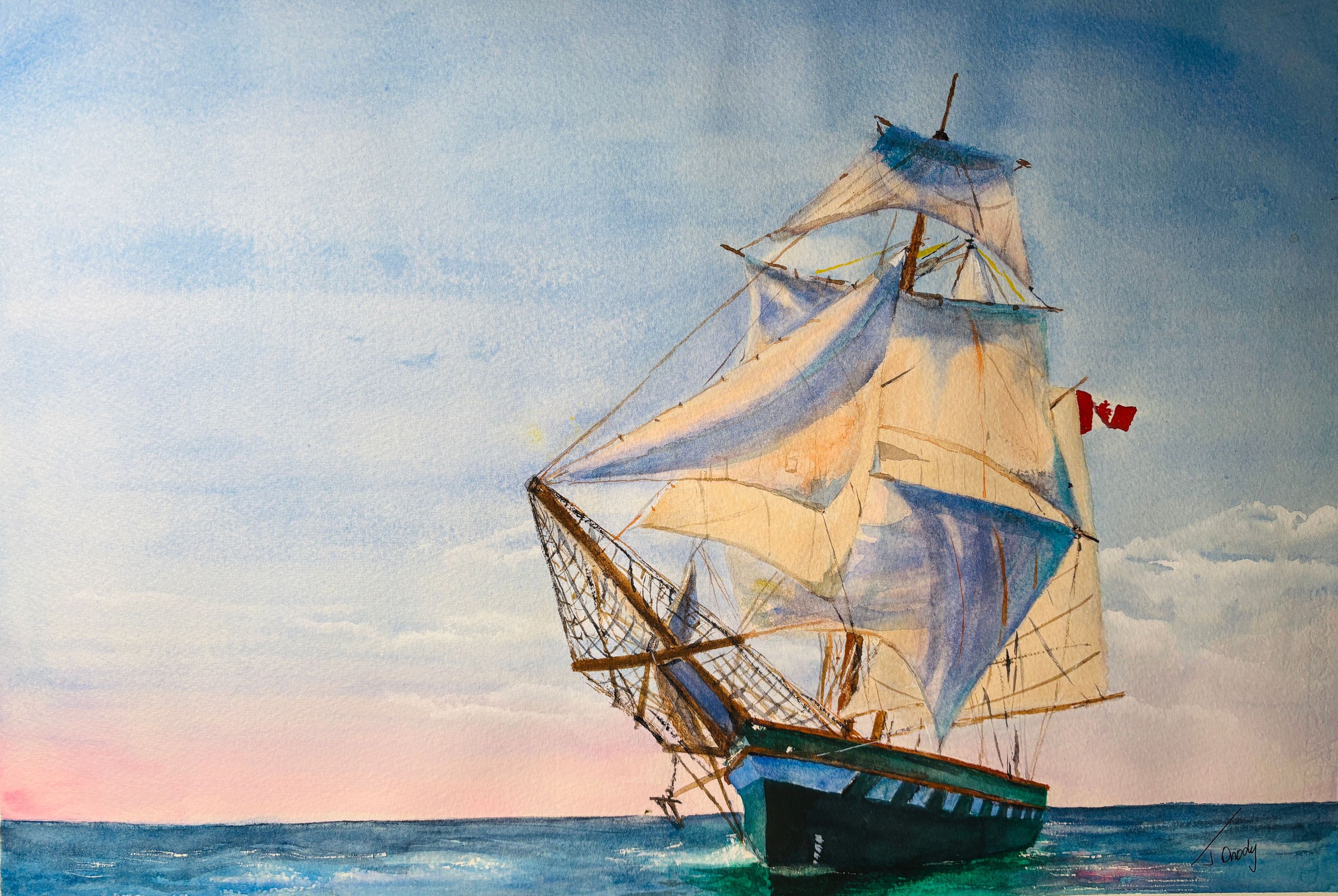 Toronto Harbour is a favourite spot to paint in the summer, especially when the Tall Ships come to visit! The Fair Jeanne is one of the true, Canadian, old-style ships to hoist sails at Sugar Beach.Judyonodystudio.com 437-998-5568