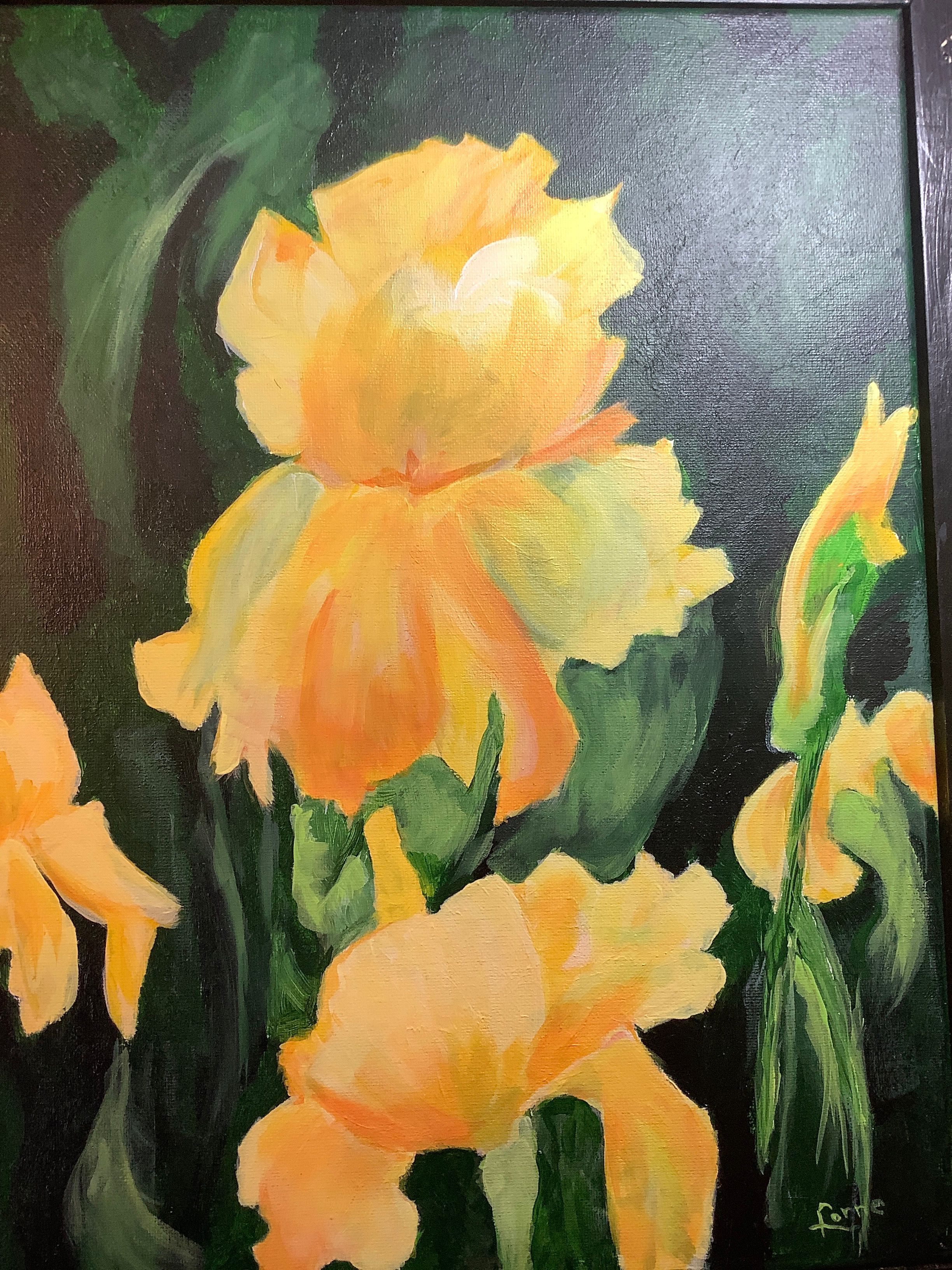 Art Image Artwork mediaAcrylicArtwork DescriptionMy summers are spent with gardening. 🧑🌾 Lorne.Cook.Yellow Irises Return. Acrylic. $225.00Artwork size 12 x 16Artwork price 225Artist Last NameCook
